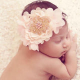 This beautiful dainty soft stretch headband is made of a soft chiffon, its perfect for a baby girls, It comes in soft peach and white. The headband is embellished with Swarovski Rhinestones. This