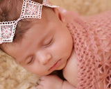 This listing is for a pair of soft pink baby headband that wraps with a ribbon. Perfect for photography, summer days with beautiful dresses and everyday use.
