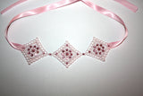 The strap is made of soft pink ribbon embellished with soft pink Swarovski Rhinestones. Perfect for infant/newborn photography.