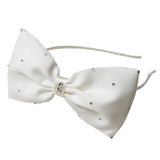 Bow headband is made of a soft satin fabric and embellished with Swarovski Rhinestones. It is attached to a satin ribbon wrapped headband. Such pretty and simple head piece. Very dainty piece, Perfect for Christmas, Valentines, Christening, School or everyday wear.