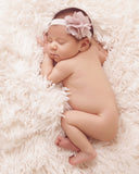 This darling flower headband is soft and very comfy. Great with any outfits. Use it everyday and let your princess look extra special.