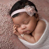 A gorgeous lace headband with heart detail on a soft elastic.