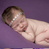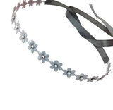 Enhance her first photo shoot with this sparkling crystal flower head wrap from Chic Crystals Boutique. Handmade in minute detail, it features a length of satin flower ribbon with sparkling Swarovski crystal accents. Satin ribbons tie gently around the head and will stay firmly in place. It is ideal for her to wear to a family photo shoot, formal dinner party or even a wedding. You'll love how it adds a measure of girlish charm to your precious baby's outfit. This is a limited edition Chic Crystals Boutique original. Order now to guarantee availability.