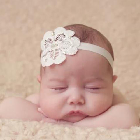 This headband is made of lace material and elastic band. The laced flower is added with Swarovski crystals for a shine and is attached to an elastic band. This can make your baby look unique and great for photography prop, or even just a fun piece for your little girl to wear at anytime! Great for many occasions!!