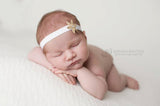 Upgrade your appearance with our Amber Headband, showcasing a lavish golden floral pattern and a flexible white band. Hand-decorated with premium Swarovski Crystals, this accessory is made from a comfortable stretch fabric. Ideal for infants, special occasions, and young children, this headband radiates sophistication with its magnificent Swarovski gemstone details.