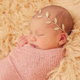 For a little pomp and pageantry, this nature-inspired gold rhinestone leaf headband is a stunning accessory for your newborn to wear for a photo shoot or for meeting family members for the first time. Custom designed in meticulous detail, it features a length of leaf ribbon trim adorned with sparkling Swarovski crystals. It has a silk ribbon along the back to make tying it onto her hair a breeze. She'll look like a Grecian princess from the moment you put it on. Most importantly, it won't snag her delicate hair and is a luxurious way to give her first baby photos an opulent flair fit for royalty. Choose from a variety of colors to match her wardrobe. This is a limited edition Chic Crystals Boutique original. Order now to guarantee availability.
