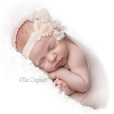 This nude baby girl’s headband will add maximum charm and stylishness to a favorite outfit. Custom designed from A to Z, it features a blush pink lace fan on one side and delicate pearl flowers on the other. The center features a dainty round chiffon appliqué with pearl accent to complete the design. It will make a sweet addition to her favorite outfit. It also makes a professional photo shoot all the more glamorous. This is a limited edition Chic Crystals Boutique original creation. Order now to guarantee availability.