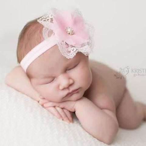 This is our beautiful Light Pink Lace chiffon Flower headband! The flower is centered with a stunning pearl rhinestone and is attached to silky soft Stretchy Band. The flower is felt backed for added comfort. WONT leave marks on your baby/child's head! You pick the size upon checkout.