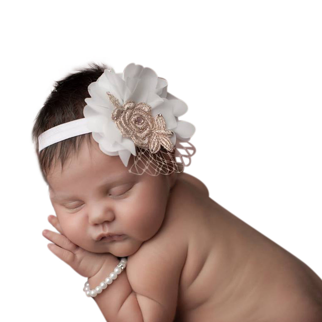Gorgeous and chic, headband is stacked with sophistication, charm & beauty! Completely one-of-a-kind and makes fabulous photos or memorable gift or everyday use. Perfect for Newborn photography, Christening, 1st Birthday, Flower girls, Baptism and more