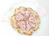 This chic headband is handmade with shabby rosette fabric and Swarovski Rhinestone. Perfect for special occasions or everyday use. Very dainty and chic. It is very sparkly and great for photo prop, Christmas, Baptism and for your all occasions.