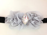 This chic headband is handmade with shabby fabric and big Swarovski Rhinestone in the middle. Perfect for special occasions. Very dainty and chic. It is very sparkly and great for photo prop.