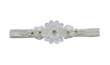 Highlight your princess's beauty with this Anabelle Headband, adorned with Swarovski crystals, a delicate lace flower, and a bow and flower made of elastic material and fabric. Suitable for daily wear or special occasions like birthdays, christenings, and baptisms, this headband will make your little one stand out. Perfect for memorable photos as well!