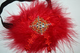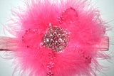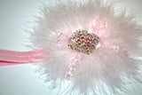 Tons of soft pink feathers and a beautiful AB Swarovski Rhinestones embellished on a silver Filigree and also flower ribbon.