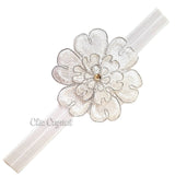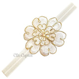 A stunning white/gold lace flower headband adorned with beautiful gold Swarovski crystals. This piece is seamlessly attached to a white elastic band that fits snug on the head. It is great to be worn at photo shoots or just a day out. Also to be worn at special occasions such as birthdays, baptisms and weddings. With the perfect amount of sparkle it is an ideal piece to be worn by girls at any age.