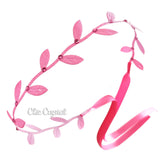 For a little pomp and pageantry, this nature-inspired hot pink rhinestone leaf headband is a stunning accessory for your baby girl to wear for a photo shoot or for meeting family members for the first time. Custom designed in meticulous detail, it features a length of leaf ribbon trim adorned with sparkling Swarovski crystals. It has a silk ribbon along the back to make tying it onto her hair a breeze. She'll look like a Grecian princess from the moment you put it on. Most importantly, it won't snag her delicate hair and is a luxurious way to give her first baby photos an opulent flair fit for royalty. Choose from a variety of colors to match her wardrobe. This is a limited edition Chic Crystals Boutique original. Order now to guarantee availability. Perfect for everyone.