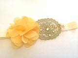 This meticulously crafted Alison Headband is ideal for various occasions, including birthdays, christenings, baptisms, or even everyday use. Adorned with dazzling Swarovski rhinestones and a delicate chiffon flower, this headband is expertly created and secured to a slim elastic band. Make a little one's day with this lovely accessory.