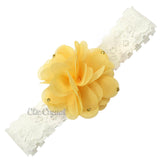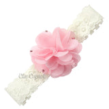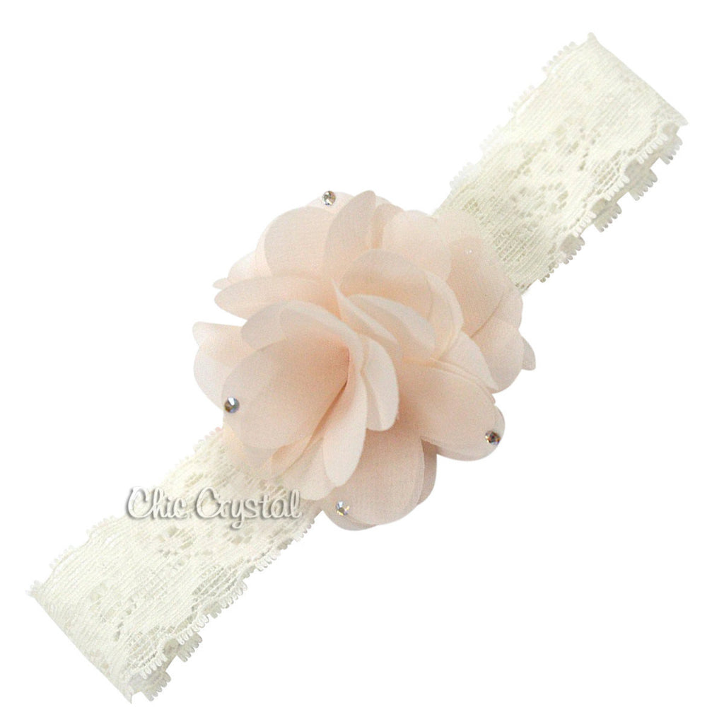 This headband is all embellished with ivory color lace band with chiffon flower (color of your choice) added with small Swarovski Rhinestones. Soft lace is delicate enough for newborns yet enough for older babies. Great for many occasions such as birthdays, Christenings and more. Make your little one look spectacular!