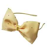 Bow headband is made of a soft satin fabric and embellished with Swarovski Rhinestones.  It is attached to a satin ribbon wrapped headband. Such pretty and simple head piece. Very dainty piece, Perfect for Christmas, Valentines, Christening, School or everyday wear.
