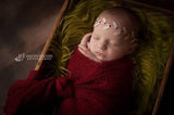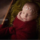For a little pomp and pageantry, this nature-inspired red rhinestone white leaf headband is a stunning accessory for your newborn to wear for a photo shoot or for meeting family members for the first time. Custom designed in meticulous detail, it features a length of leaf ribbon trim adorned with sparkling Swarovski crystals. It has a silk ribbon along the back to make tying it onto her hair a breeze. She'll look like a Grecian princess from the moment you put it on. Most importantly, it won't snag her delicate hair and is a luxurious way to give her first baby photos an opulent flair fit for royalty. Choose from a variety of colors to match her wardrobe. This is a limited edition Chic Crystals Boutique original. Order now to guarantee availability.