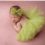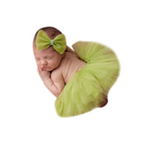 Welcome your little princess to the world in style with this green newborn tutu and tulle bow headband set from ChicCrystalsBoutique. Custom handcrafted to perfection, it features a tulle tutu. A matching tulle bow headband with a rhinestone embellishment completes the look. There simply is no better way to capture the precious nature of your baby than to dress her as a fairy princess for her very first photo shoot. It also makes a thoughtful gift idea for a new or expectant mother. Choose from red, black, pink or ivory according to your tastes. Order now to guarantee availability.