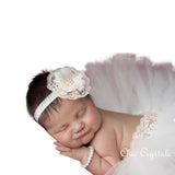 Welcome your little princess to the world in style with this ivory newborn tutu and lace headband set from ChicCrystalsBoutique. Custom handcrafted to perfection, it features a tulle tutu adorned with vintage lace and satin flower accents. A matching lace headband with a rhinestone embellishment completes the look. There simply is no better way to capture the precious nature of your baby than to dress her as a fairy princess for her very first photo shoot. It also makes a thoughtful gift idea for a new or expectant mother. Order now to guarantee availability.