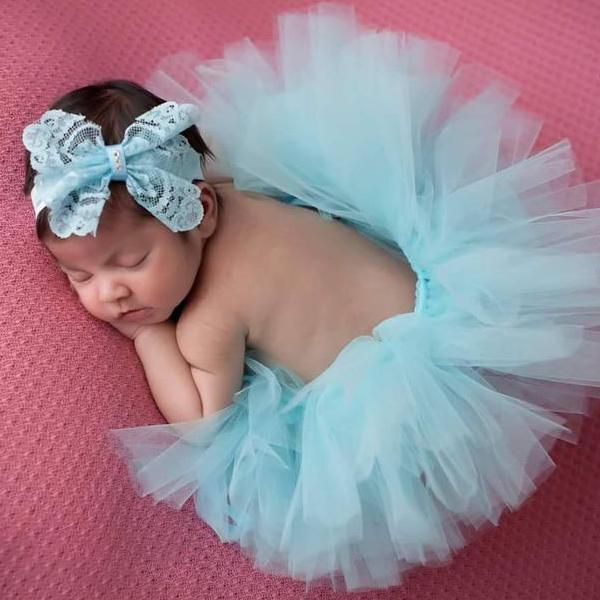 Welcome your little princess to the world in style with this baby blue color newborn tutu and lace bow headband set from ChicCrystalsBoutique. Custom handcrafted to perfection, it features a tulle tutu. A matching color lace bow headband with a rhinestone embellishment completes the look. There simply is no better way to capture the precious nature of your baby than to dress her as a fairy princess for her very first photo shoot. It also makes a thoughtful gift idea for a new or expectant mother.