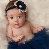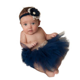 Welcome your little princess to the world in style with this navy blue color newborn tutu and lace headband set from ChicCrystalsBoutique. Custom handcrafted to perfection, it features a tulle tutu. A matching lace headband with a pearl embellishment completes the look. There simply is no better way to capture the precious nature of your baby than to dress her as a fairy princess for her very first photo shoot. It also makes a thoughtful gift idea for a new or expectant mother. Choose from navy blue, ivory, pink, according to your tastes. Order now to guarantee availability.