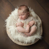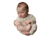 SET includes:(1) Newborn romper sets are designed for photography purposes to fit snugly on average size newborn without diaper to show off baby's form. Lace details on front, handmade with gold/ivory stretch lace