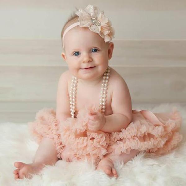 This headband for baby girls in a nude color adds a touch of charm and style to any outfit. It's custom made with a soft nude lace fan on one side and delicate peach chiffon on the other, accented with a dainty round chiffon appliqué and Swarovski crystals. This limited edition creation from Chic Crystals Boutique will elevate any outfit and make a professional photo shoot more glamorous. Order now to secure one.